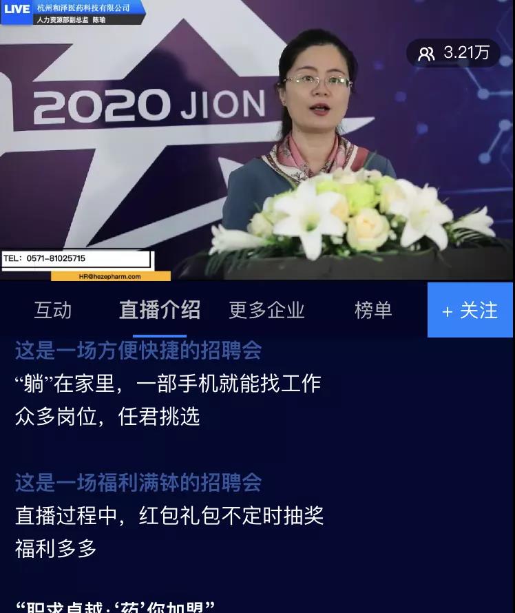 時(shí)光瞬逝,4月仿佛還未開(kāi)始,就已經(jīng)進(jìn)入了尾聲。在應(yīng)屆畢業(yè)生即將走入大學(xué)尾聲、開(kāi)啟社會(huì)旅程的時(shí)間里,和澤醫(yī)藥也踏上了收獲人才碩果的旅途。社會(huì)發(fā)展局副局長(zhǎng)陳國(guó)鋒(右)和主持人一起與觀眾進(jìn)行線(xiàn)上互動(dòng)“5、4、3、2、1,開(kāi)播”——4月22日下午14時(shí),隨著現(xiàn)場(chǎng)導(dǎo)演的口令,“職求卓越·‘藥’你加盟”浙江理工大學(xué)專(zhuān)場(chǎng)直播招聘會(huì)準(zhǔn)時(shí)在杭州醫(yī)藥港小鎮(zhèn)拉開(kāi)序幕。和澤醫(yī)藥受邀做客直播間,參與宣講。和澤醫(yī)藥人力資源部